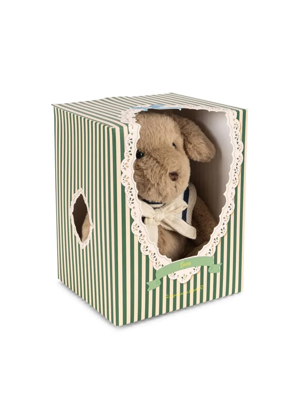 Le chiot Luca Sailor de Konges Sløjd. Vêtu d’une tenue de marin, ce chiot le plus doux a la taille parfaite pour les câlins.
