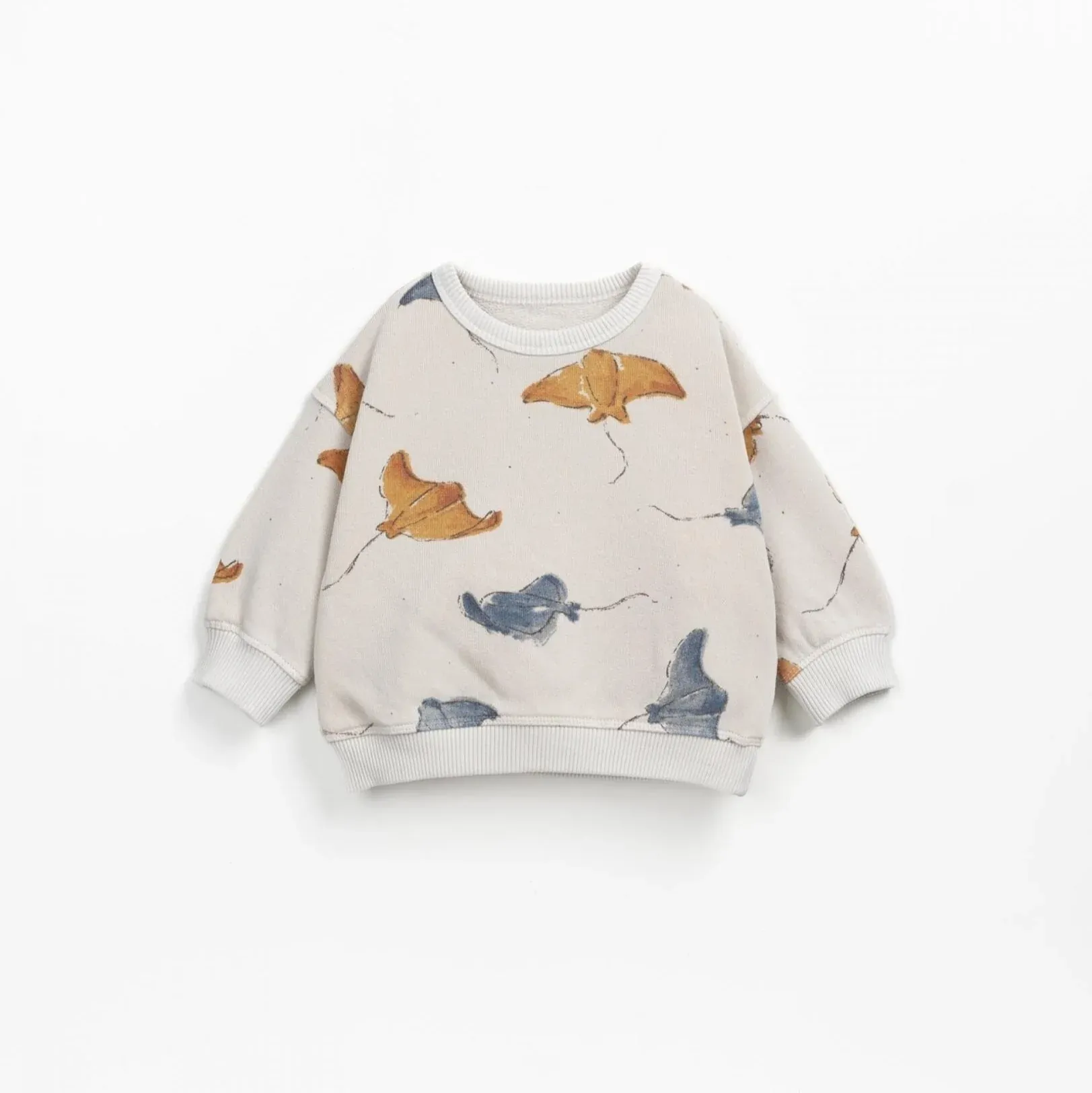 Pull de couleur Sheep de Play Up. Ce pull en jersey double maille est confectionné à partir d’un mélange de coton biologique et de chanvre. Le modèle a un col rond, des poignets et un bas élastiques et un imprimé floral avec un effet coup de peinture décontracté.