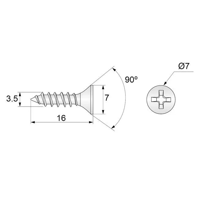 Caractéristiques techniques: Vis à bois PH2 3.5x16mm Zinc Blanc (1000 pièces)