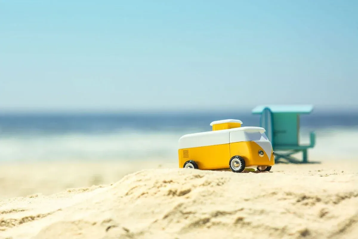 Voiture jouet en bois – Bus de plage jaune – Candylab