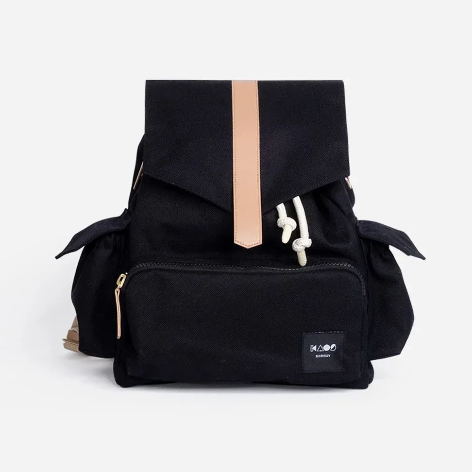 Sac de week-end en noir avec détails en cuir végétalien de KAOS. Les week-ends avec les enfants ne seront plus jamais les mêmes. Gardez les mains libres avec ce sac à dos pratique ! Il dispose de plusieurs compartiments intérieurs pour l’organisation et d’une poche zippée cachée pour votre ordinateur portable.